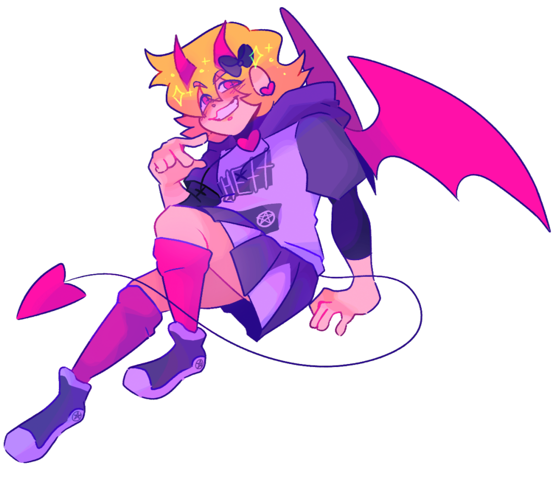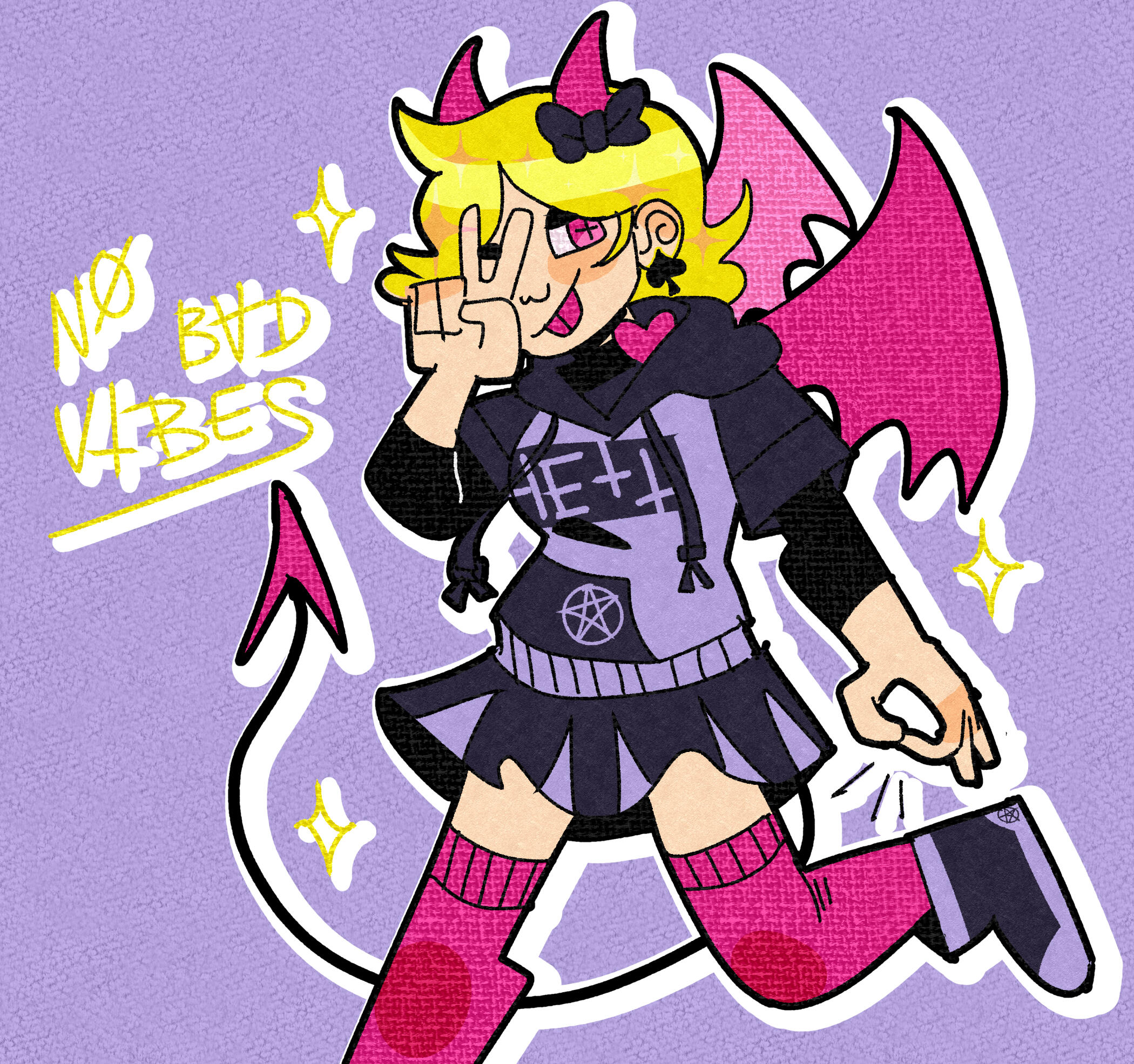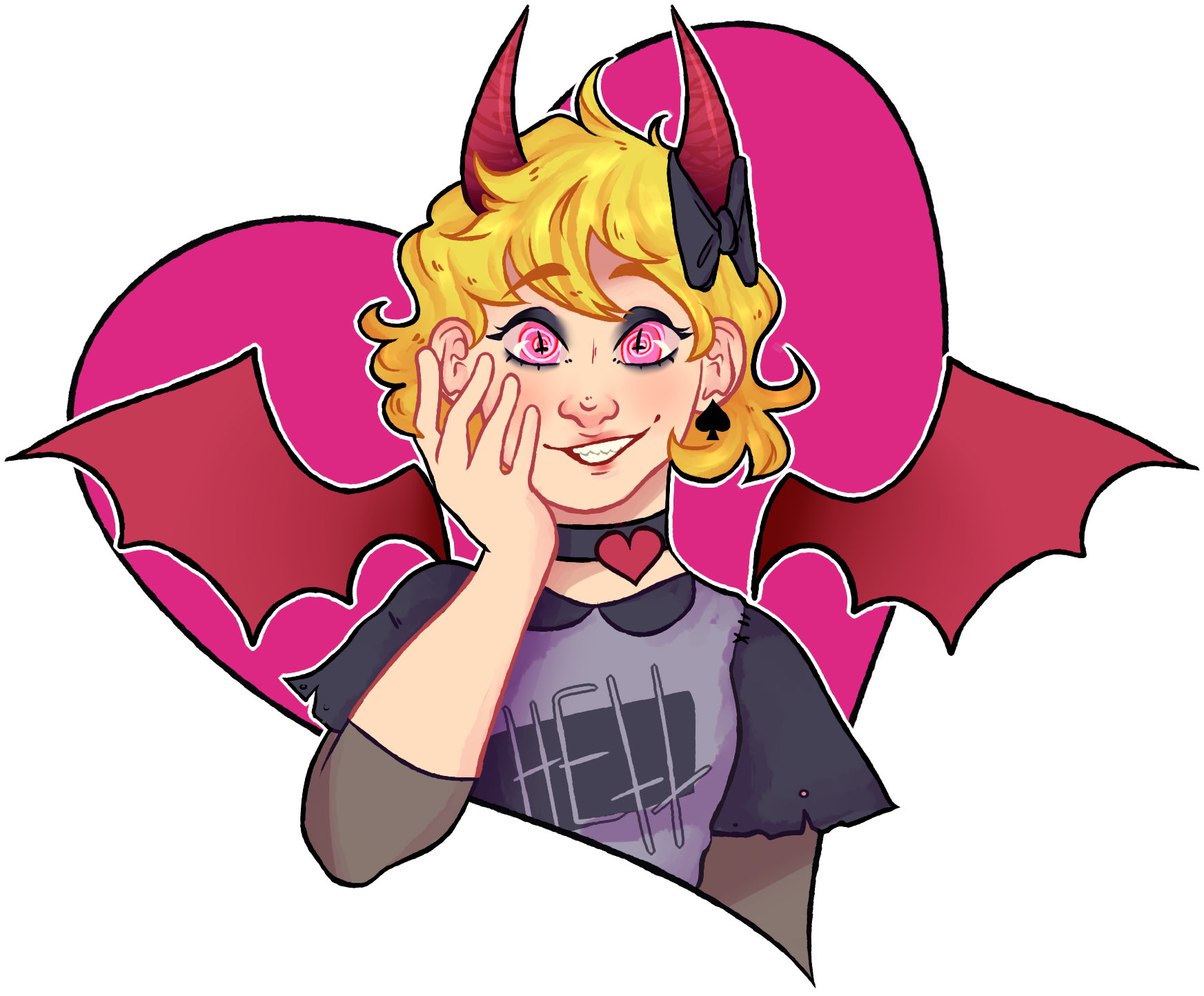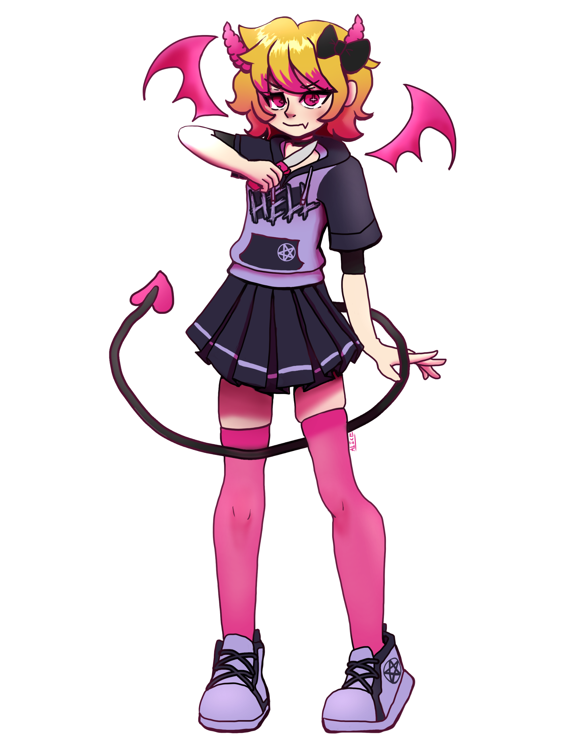 Melanie is a Hell-Born Demon, ie; a demon that didn’t originate from a single corrupted human soul, but born from the energy given off by the many corrupted souls in hell. She tends to find life on the surface more interesting than in Hell since she doesn’t have any important purpose down there and tbh Hell kind of sucks even for demons. Too much bad mojo, Melanie says. She’s pretty chill and prefers to live every day like the homeless equivalent of a couch potato. She likes teasing people and freaking people out but in general, she’s really just pretty mellow. The only thing tying her down to any given location is her dozens of adopted rat children who sleep with her in alleyways.Mel has been living in 'America' since about 1750. She’s never met Satan, but she refers to him as “Dad”/"Daddy" either way, probably just to rub it in. She’s really into fashion, shoplifting, and cool memes. Most nights are spent in an alley with a trashcan fire, canned food, and rats. She loves her rats.She’ll flirt with boys to get things she wants out of them, but generally will not form romantic attachments to them. She loves kissing women.