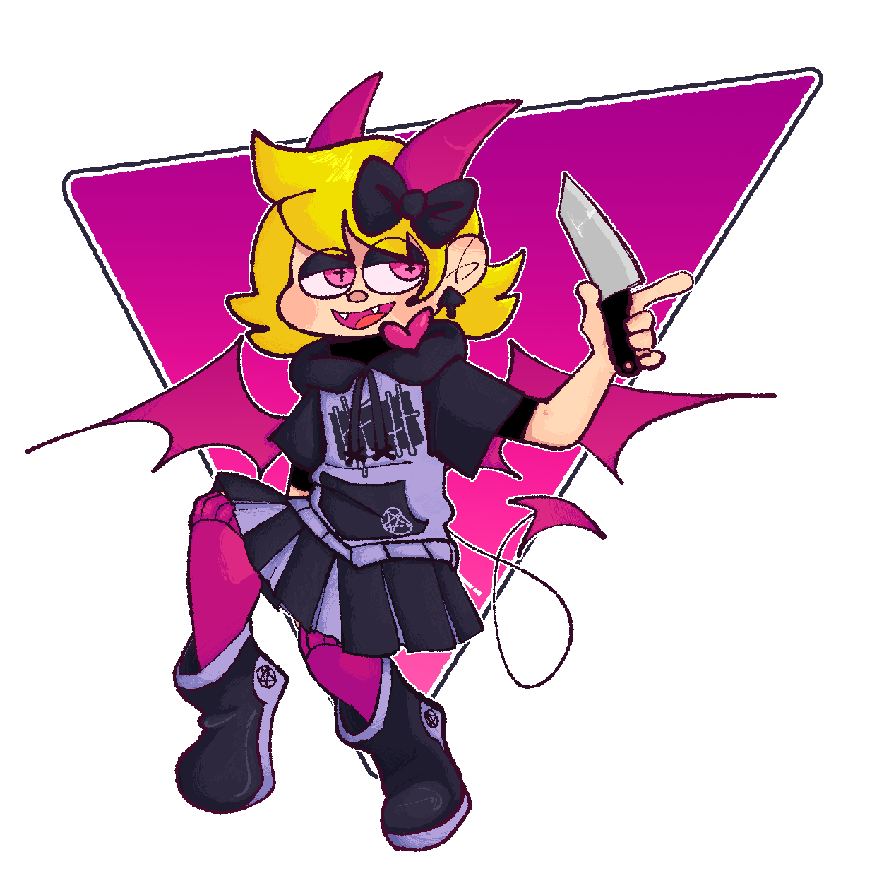 (wip) melanie was a succubus living under dracula vlad’s rule until lisa died and dracula declared war. despite frequently joking about, alluding to, and threatening death/harm on people, she’s admittedly not big on fighting, especially not for a war she sees no reason for. she defected after war was declared, though she never officially admitted to anyone that she was doing so. she essentially went “oh, war? okay, well, i’ll be right back, guys” stole all of the castle’s bread and just ran away. she’s indifferent to monsters and humans alike, despite being a demon herself, and will often help out belmonts on their quests to slay dracula if she comes across them. she has a bit of a personal vendetta against dracula, since she basically lost her home because of him.