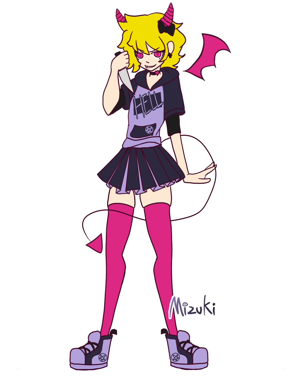 age 19, mel was a previous player a the reaper’s game, but she opted to become a reaper after playing the game for a single day and finding missions tedious and exhausting. she abandoned her partner, but didn’t feel bad about doing so until it was much too late. the illegitimate daughter of a rich entrepreneur, she only got to see her father on rare occasions, but the moments she spent with him were the best days of her life. even though he kept her a secret, he cared very deeply for his daughter as she was growing up. melanie often bragged about his status as both a way of feeling closer to him, and trying to get freebies in life. the memories of her interactions with her father were her entry fee, which she never got back, as she forfeited her game. she remembers that her father was rich, but doesn’t remember his name or that she’s ever met him. thinking she didn’t have much going for her in her life, she found it much more interesting to be a reaper than to try to win her old life back, as she was homeless and living on the streets, and all memories of the only person who ever cared for her were wiped from her memory. she was supposed to grow as a person by finding her own identity outside of her father’s status, but permanently losing her fee has lead to the opposite effect, making her brag about him more frequently as a defense mechanism for never knowing her father.she doesn’t take her new job very seriously, and is constantly slacking off. she’s often ‘punished’ by being put on wall duty, but that doesn’t seem to bother her, and she often uses it to her advantage, asking players to bring her things that she wants to get through. most often, this is some kind of snack. she prefers any kind of pizza, as well as the hot dogs from spain hill. every once in a while, she’ll ask a player to buy her a new hoodie because she’s spilled ketchup and/or mustard all over her current hoodie. half of the time this occurs, however, players return to see her already in a new hoodie, announcing that they took too long so she ditched and got a new one for herself, commenting that if they had been faster, they would have been able to sneak right on by since she left the way wide open in her absence. being a low level reaper, she can’t summon very powerful noise, but this doesn’t bother her either. she summons rat noise, and only rat noise. she loves rats. lets be honest her noise form is just a slightly larger than average rat with devil horns.overall, she’s very chaotic neutral and doesn’t particularly care what anyone else does, players and reapers alike. she’s not out to get anyone, but she’s not above using anyone for her own pleasure or gain.